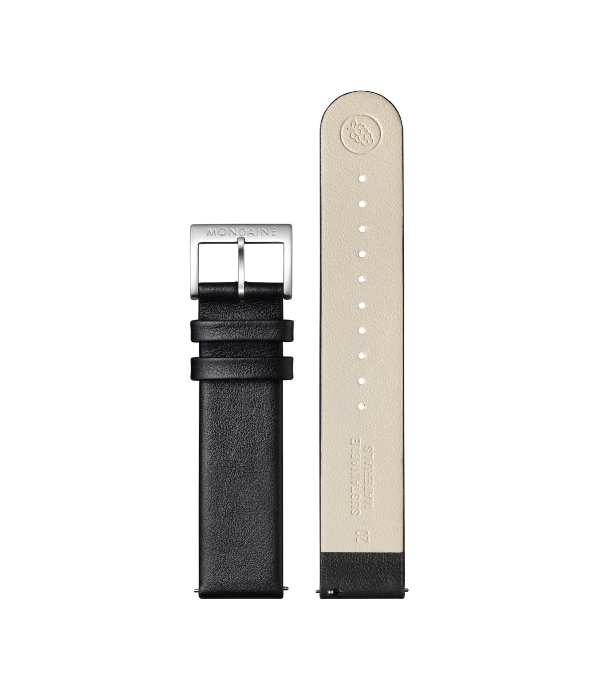 Cinturino Mondaine 20mm Nero ecopelle Vegea® con fibbia satinata