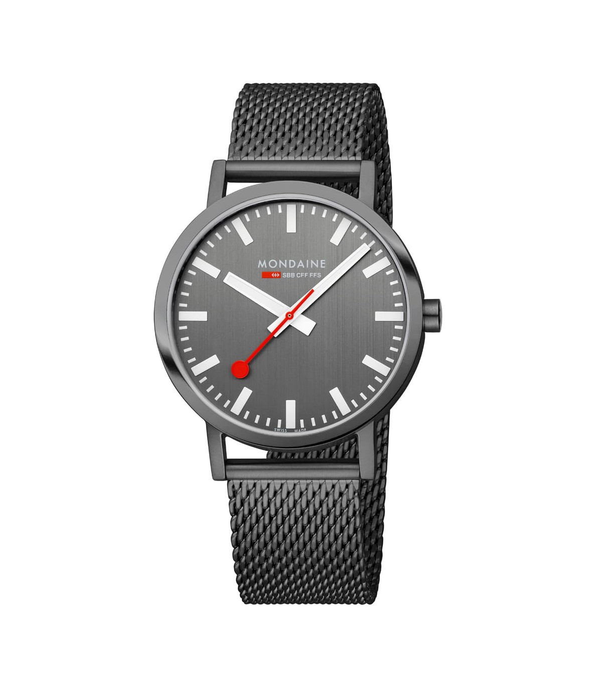 Il Mondaine Classic 40 mm placcato grigio antracite rimane fedele all’iconico design dell’orologio ufficiale delle Ferrovie Svizzere, reinterpretato in chiave contemporanea con un elegante quadrante grigio dal carattere moderno e sofisticato. Interamente Swiss Made, rappresenta l’equilibrio perfetto tra tradizione e innovazione.