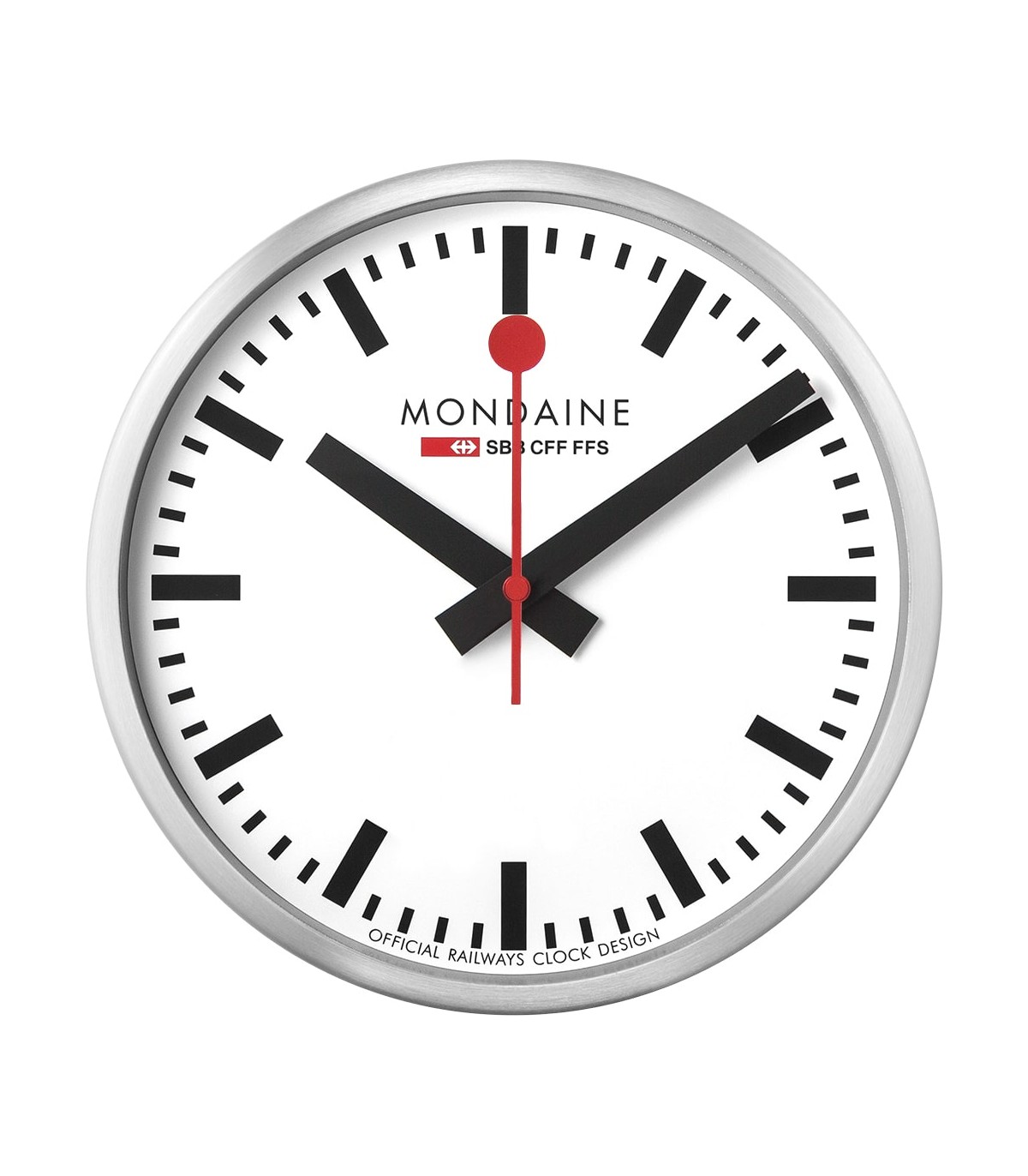Puntualità e precisione sono da sempre un trademark nazionale svizzero. Creato nel 1944 dalle Ferrovie Svizzere per l'uso in stazione, Mondaine Wall Clock Stop2Go è l'orologio da parete che riproduce lo stesso movimento che ha reso i treni svizzeri icone della puntualità.